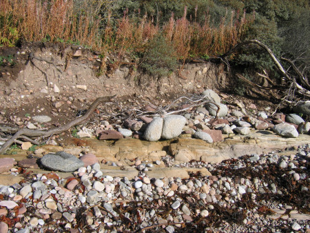within the eroded low-cliff (below-right); a low-tide is needed in order