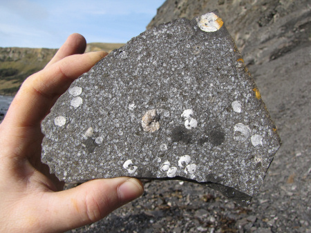 valves, found on the surface of a fallen boulder beneath Hen Cliff, Upper